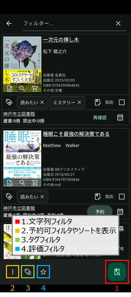タイトルや著者でフィルタ可能です。 - 既読/未読によるフィルタ