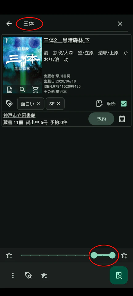 書籍を抽出した結果が表示されます。